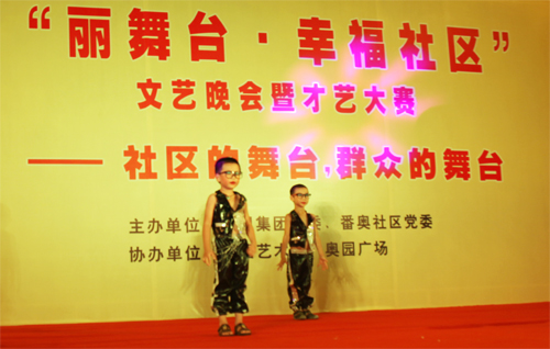 (2013年8月12日——廣州)社區(qū)的舞臺(tái),群眾的舞臺(tái),由奧園集團(tuán)黨委、番奧社區(qū)黨委主辦,奧園藝術(shù)團(tuán)、奧園廣場(chǎng)協(xié)辦的“麗舞臺(tái)·幸福社區(qū)”文藝晚會(huì)暨才藝大賽在番奧社區(qū)籃球場(chǎng)熱烈舉行。