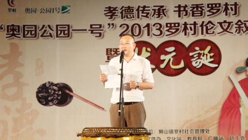 (2013年09月16日——佛山)孝德傳承,書香羅村,奧園·公園一號(hào)“2013羅村倫文敘讀書月開幕式暨狀元誕活動(dòng)”圓滿舉行。奧園中山片區(qū)總經(jīng)理兼南海項(xiàng)目總經(jīng)理?xiàng)罱ㄏ嫦壬鱿顒?dòng)并作致辭,奧園·公園一號(hào)項(xiàng)目向羅村文化站贈(zèng)送了1000冊(cè)圖書并為優(yōu)秀學(xué)子頒發(fā)了獎(jiǎng)學(xué)金。