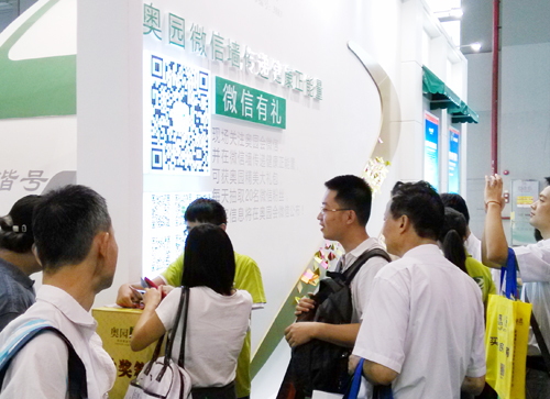 房博會上,奧園展位以簡潔時尚的形象,全面突出展示了各核心項目,展位別出心裁以地鐵指示站牌、和諧號機車形象為主要設(shè)計元素,凸顯了奧園品牌內(nèi)涵和項目區(qū)位優(yōu)勢。同時還積極采用新媒體推廣手段,展位現(xiàn)場設(shè)立了“奧園微信墻,傳遞健康正能量”微信互動區(qū),關(guān)注“奧園會”及各項目公司微信公眾平臺。