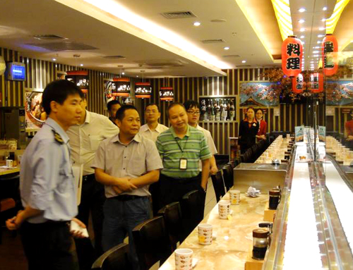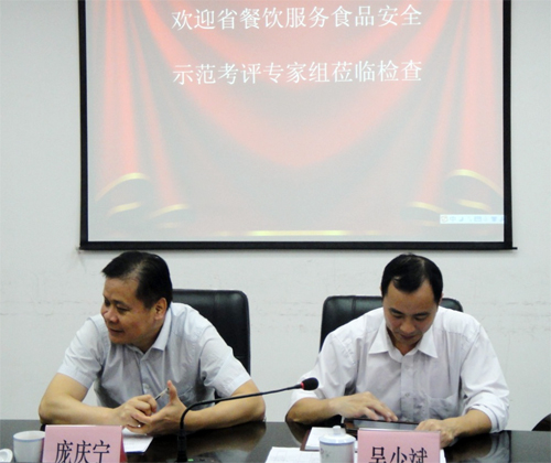 (2013年10月31日——廣州)廣東省食品藥品監(jiān)督管理局黨組成員、廣東省食安辦副主任吳圣明及省餐飲服務食品安全示范建設工作辦公室相關領導,在市食品藥品監(jiān)督管理局副局長龐慶寧、番禺區(qū)副區(qū)長張力仁及番禺區(qū)食品藥品監(jiān)督管理局相關人員陪同下蒞臨奧園廣場就餐飲服務食品安全示范創(chuàng)建工作進行調研。奧園廣場商業(yè)物業(yè)管理公司總經(jīng)理潘錦川先生接待了調研組領導一行,并介紹了相關創(chuàng)建工作情況。
