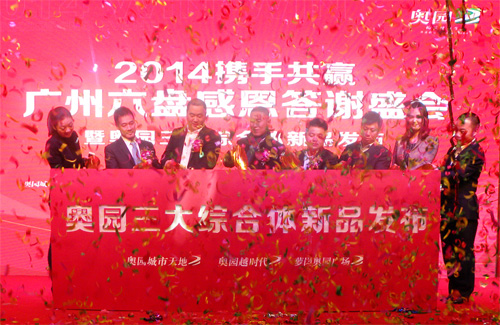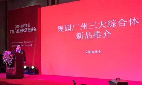(2014年3月9日——廣州)“廣州奧園六盤(pán)感恩答謝盛會(huì)暨奧園三大綜合體新品發(fā)布”活動(dòng)在奧園高爾夫酒店隆重舉行,主辦方奧園集團(tuán)廣州區(qū)域公司邀約了中山大學(xué)的博士生導(dǎo)師林江教授發(fā)表關(guān)于“2014年房地產(chǎn)市場(chǎng)分析及預(yù)測(cè)”的主題演講,同時(shí)啟動(dòng)“奧園城市天地、奧園越時(shí)代、蘿崗?qiáng)W園廣場(chǎng)”三大綜合體的新品發(fā)布,當(dāng)天現(xiàn)場(chǎng)吸引了600多位業(yè)主、客戶前來(lái)參加。
