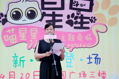 奧園廣場商業(yè)物業(yè)管理公司總經(jīng)理姜惠女士為“喵星星”兒童主題商城開業(yè)致辭