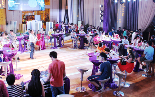 盛典當(dāng)晚,在豪華的蘿崗?qiáng)W園廣場(chǎng)銷售中心,以紫色為主色調(diào)的會(huì)場(chǎng)布置,將每位盛裝出席的貴賓引入格調(diào)高雅之境。伴隨優(yōu)雅的大提琴演奏聲,酒會(huì)正式揭開序幕。蘿崗?qiáng)W園廣場(chǎng)貼心的為參加的VIP客戶們準(zhǔn)備了各式精致自助美食,舌尖上的饕餮盛宴讓大家從視覺到味覺無(wú)不享受。
