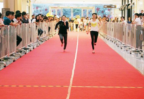 母親節(jié)高跟鞋大賽的選手在奔跑