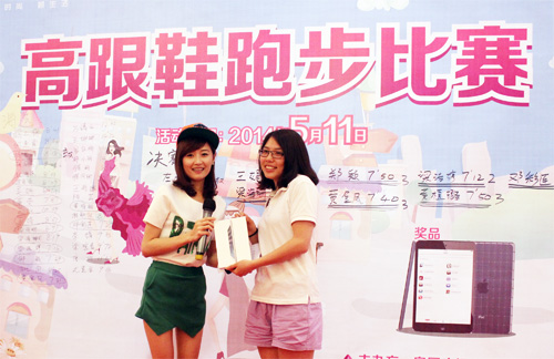 母親節(jié)高跟鞋大賽冠軍得主和主持人合影
