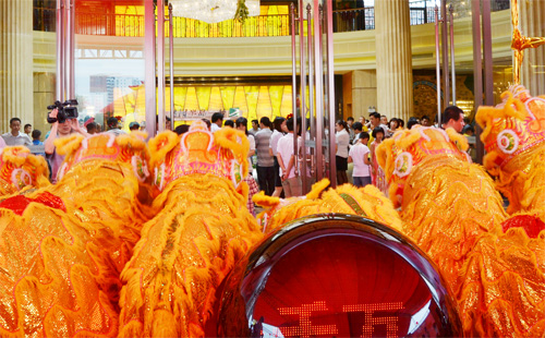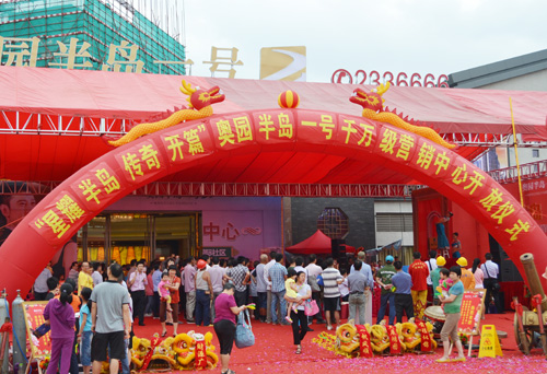 (2014年5月24日——梅州)飛舞的氣球、喜慶的鑼鼓、威武的南獅、熱烈的掌聲,梅州奧園半島一號銷售中心盛大開放!奧園集團(tuán)梅州項目副總經(jīng)理羅廣鷹先生、郭建明先生等與梅州市工商業(yè)聯(lián)合會、梅州市工商業(yè)聯(lián)合會、梅州·世界客商大會秘書處、梅州市芹洋半島品牌戰(zhàn)略發(fā)展區(qū)開發(fā)建設(shè)小組辦公室等各大協(xié)會機(jī)構(gòu)一眾領(lǐng)導(dǎo)嘉賓一同出席了此次活動。當(dāng)天上午,銷售中心內(nèi)外可謂是人聲鼎沸、熱鬧非凡,場面異?;鸨笈庀蚩蛻舻皆L、參觀,前來咨詢的客戶更是絡(luò)繹不絕。
