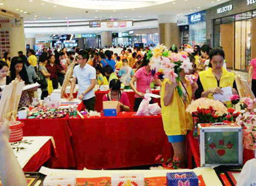 活動從上午10點持續(xù)到下午3點,番禺和悅社工、正陽社工、普愛社工、橋創(chuàng)社工、同創(chuàng)社工、陽光天使社工、廣愛社工等機構(gòu)聯(lián)合表演了精彩的節(jié)目,并在東門處設(shè)置義賣攤位,通過現(xiàn)場出售殘障人士DIY的手工作品,募集愛心基金,用于幫助社會上有需要的人。