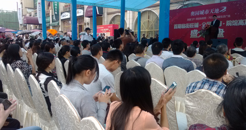 開盤當天早上8點,重慶奧園城市天地廣場及道路兩旁早已排起了車龍,從各地冒雨趕來選房的客戶已早早簽到登記,并陸續(xù)進入選房區(qū)等候。9點30分,開盤盛典正式開始,全場入場客戶有上千余名,到處人頭攢動,景象甚是壯觀。在選房過程中,場面雖異?;鸨瑓s井然有序、有條不紊,每個工作人員都忙得不可開交,現(xiàn)場客戶也翹首以待。據(jù)相關(guān)人士透露,此次首期開出的輕軌臨街商鋪、中心院館高層、城央墅公園洋房受到購房者的瘋搶,更有客戶一口氣買入二十余間商鋪。