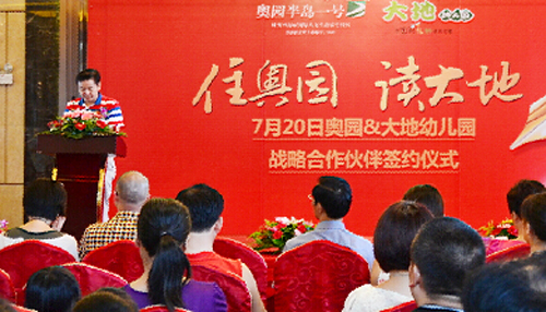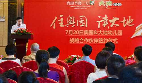 (2014年7月20日——梅州)2014年7月20日,奧園集團(tuán)(梅州)有限公司與大地幼兒園意向戰(zhàn)略合作簽約儀式在奧園半島一號(hào)銷售中心舉行。當(dāng)天,奧園集團(tuán)(梅州)有限公司副總經(jīng)理郭建明、大地幼教機(jī)構(gòu)粵東片區(qū)部長(zhǎng)江瑜彥、大地幼教梅州執(zhí)行校董黃克雄等領(lǐng)導(dǎo)及梅州市各大新聞媒體記者出席此次簽約儀式。