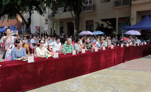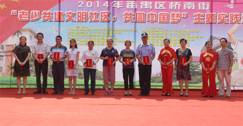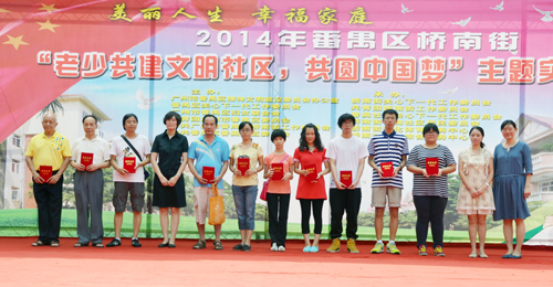 (2014年7月15日—廣州)7月15日上午,“老少共建文明社區(qū),共圓中國(guó)夢(mèng)”主題實(shí)踐活動(dòng)在番奧社區(qū)文化長(zhǎng)廊舉行,此次活動(dòng)由番奧社區(qū)黨委與區(qū)文明辦、區(qū)關(guān)工委、區(qū)婦聯(lián)、團(tuán)區(qū)委、橋南街黨工委聯(lián)合主辦。番禺區(qū)委常委、宣傳部部長(zhǎng)徐柳,區(qū)關(guān)工委名譽(yù)主任越良釗、莫燦章、謝權(quán)森、葉才,執(zhí)行主任陳松有,副主任郭錫森、陳又南,區(qū)委老干部局局長(zhǎng)黃錦坤、團(tuán)區(qū)委副書記吳錦瑩等領(lǐng)導(dǎo)出席了活動(dòng)。番奧社區(qū)居民代表220多人參加了此次活動(dòng)。