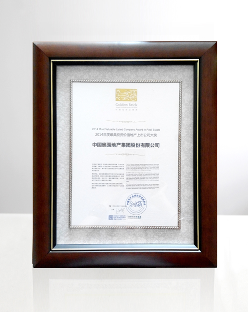 中國奧園榮獲“2014年度最具投資價(jià)值地產(chǎn)上市公司”稱號(hào)