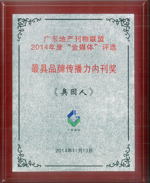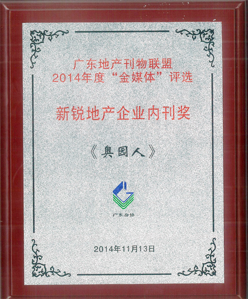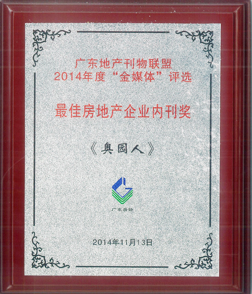 ?。?014年11月15日——廣州)11月13日,由廣東省房地產(chǎn)行業(yè)協(xié)會主辦的“廣東地產(chǎn)刊物聯(lián)盟2014年度‘金媒體’評選”中,中國奧園地產(chǎn)集團(tuán)《奧園人》內(nèi)刊獲得“最佳房地產(chǎn)企業(yè)內(nèi)刊獎”、“最具品牌傳播力內(nèi)刊獎”、“新銳地產(chǎn)企業(yè)內(nèi)刊獎”榮譽(yù)稱號,來自廣東地產(chǎn)行業(yè)的20余家企業(yè)參與了本次活動和評選。主辦單位及評委會認(rèn)為,《奧園人》內(nèi)刊緊緊圍繞中國奧園地產(chǎn)集團(tuán)的企業(yè)戰(zhàn)略和生產(chǎn)經(jīng)營,很好地展示了奧園集團(tuán)的形象和企業(yè)文化,在弘揚(yáng)企業(yè)價值觀和經(jīng)營觀、塑造良好的企業(yè)形象、營造積極向上的企業(yè)文化氛圍、促進(jìn)企業(yè)生產(chǎn)經(jīng)營和管理等方面很好地發(fā)揮了作用。