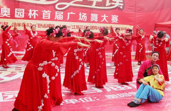 ?。?014年12月28日——廣州)12月28日下午,梅州奧園半島一號前庭廣場人山人海,2014奧園杯首屆廣場舞大賽決賽活動在此舉辦,從梅江望過去一片五顏六色的“彩旗”在飄揚,氣氛熱烈。