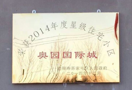 ?。?014年12月27日——沈陽(yáng))經(jīng)政府部門多方考評(píng),沈陽(yáng)奧園國(guó)際城被沈陽(yáng)市蘇家屯區(qū)人民政府授予“2014年度星級(jí)住宅小區(qū)”稱號(hào)。12月26日下午,掛牌授獎(jiǎng)儀式在沈陽(yáng)奧園國(guó)際城舉行,蘇家屯住宅小區(qū)辦公室副主任鄭斌、物業(yè)管理部部長(zhǎng)胡國(guó)軍,沈陽(yáng)奧園物業(yè)公司總經(jīng)理彭少良等領(lǐng)導(dǎo)出席了本次授獎(jiǎng)儀式。