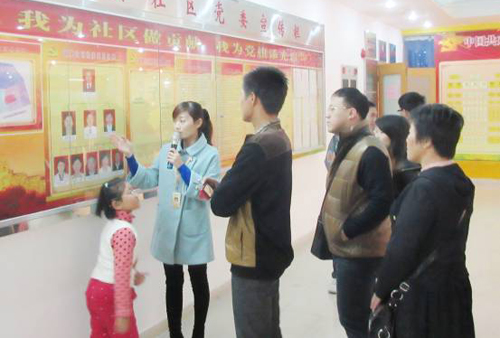 工作人員向參觀團展示番奧社區(qū)黨建工作