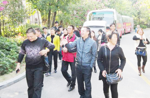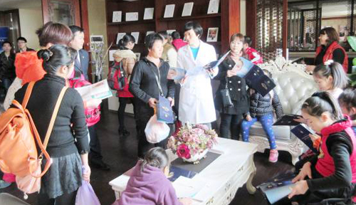 養(yǎng)生酒店健管中心工作人員和參觀團交流養(yǎng)生知識