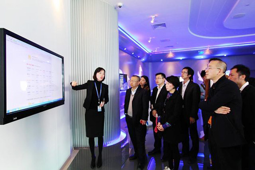 在騰訊智能展廳,工作人員向大家展示基于移動互聯(lián)網(wǎng)的各種未來智能家居應(yīng)用方案,以及基于騰訊地圖的O2O解決方案等騰訊領(lǐng)先的服務(wù)技術(shù)平臺。