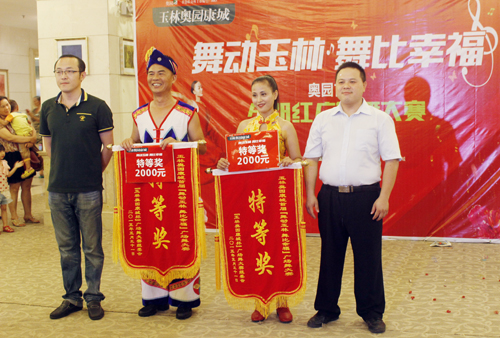 ??? (2015年5月31日——玉林)2015年5月31日,“舞動玉林?舞比幸?!薄窳謯W園康城首屆廣場舞大賽完美落幕。本次大賽是由玉林市老干部活動中心、玉林市群眾藝術(shù)館、玉林奧園康城聯(lián)合舉辦。大賽自4月30日啟動以來,廣受市民追捧和支持。僅用1個月時間則完成籌備、報名、海選、復(fù)賽到?jīng)Q賽,并取得良好效果。同時,決賽當(dāng)天,玉林市群眾藝術(shù)館文化活動基地奧園康城站正式成立,可謂雙喜臨門。