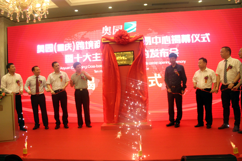 九龍坡區(qū)相關(guān)領(lǐng)導(dǎo)與奧園集團(tuán)領(lǐng)導(dǎo)一起揭幕重慶跨境商品展示交易中心