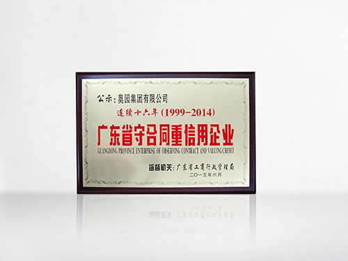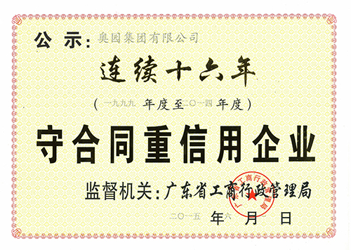 奧團(tuán)連續(xù)十六年榮膺“廣東省守合同重信用企業(yè)”稱號