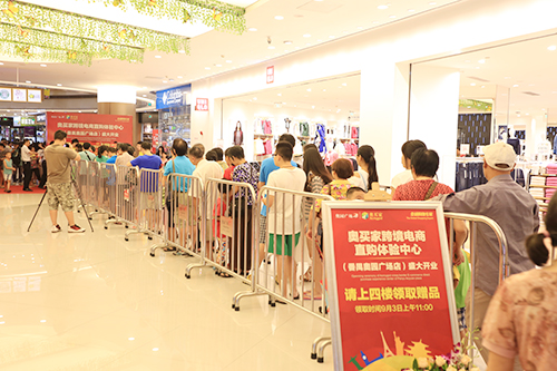 ?????? ?? 當(dāng)天上午數(shù)千名市民見證了盛大的開業(yè)典禮,并早早地排隊(duì)等候入場。活動(dòng)現(xiàn)場處處洋溢著異國風(fēng)情和開業(yè)的喜慶氛圍,數(shù)十位外國美女、帥哥為市民貼身導(dǎo)購服務(wù),數(shù)萬種進(jìn)口商品開業(yè)驚爆價(jià),牛奶、薯片等進(jìn)口商品免費(fèi)領(lǐng),現(xiàn)金券大派送等。11:00準(zhǔn)時(shí)開業(yè),排隊(duì)等候的市民迫不及待入場瘋搶進(jìn)口商品,盛況空前,搶購場面震撼。