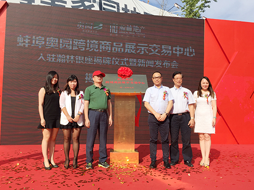 各位領(lǐng)導(dǎo)共同為“蚌埠奧園跨境商品展示交易中心”揭牌!