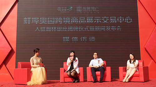 (2015年9月12日——蚌埠)為了將瀚林銀座項(xiàng)目打造成為蚌埠商業(yè)標(biāo)桿項(xiàng)目,瀚林地產(chǎn)與香港上市名企、中國(guó)房企30強(qiáng)中國(guó)奧園地產(chǎn)集團(tuán)(股票編號(hào):3883)強(qiáng)強(qiáng)合作共同開(kāi)發(fā)打造瀚林銀座項(xiàng)目,并引入奧園旗下跨境電商品牌,全球購(gòu)物專(zhuān)家——奧買(mǎi)家,打造皖北首個(gè)跨境商品展示交易中心,滿足蚌埠人民對(duì)進(jìn)口商品的消費(fèi)需求,提升蚌埠人民生活品質(zhì)。蚌埠奧園跨境商品展示交易中心入駐瀚林銀座揭牌儀式暨新聞發(fā)布會(huì)于2015年9月12日下午在蚌埠瀚林銀座售樓處隆重舉行。
