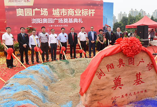 (2015年9月14日——瀏陽)9月14日,瀏陽奧園廣場舉行了隆重的奠基典禮,現(xiàn)場鑼鼓喧天,高朋滿座,禮炮齊鳴,一片喜慶。