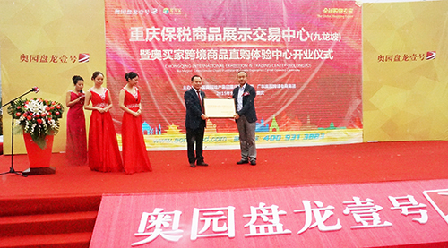 (2015年9月26日——重慶)9月26日,“中國•重慶保稅商品展示交易中心”正式在奧園盤龍壹號授牌開業(yè),九龍坡區(qū)區(qū)長石繼東親自為項目授牌。