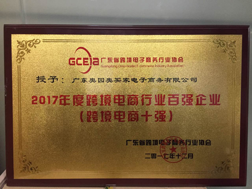 奧買家電商榮獲2017年跨境電商企業(yè)10強