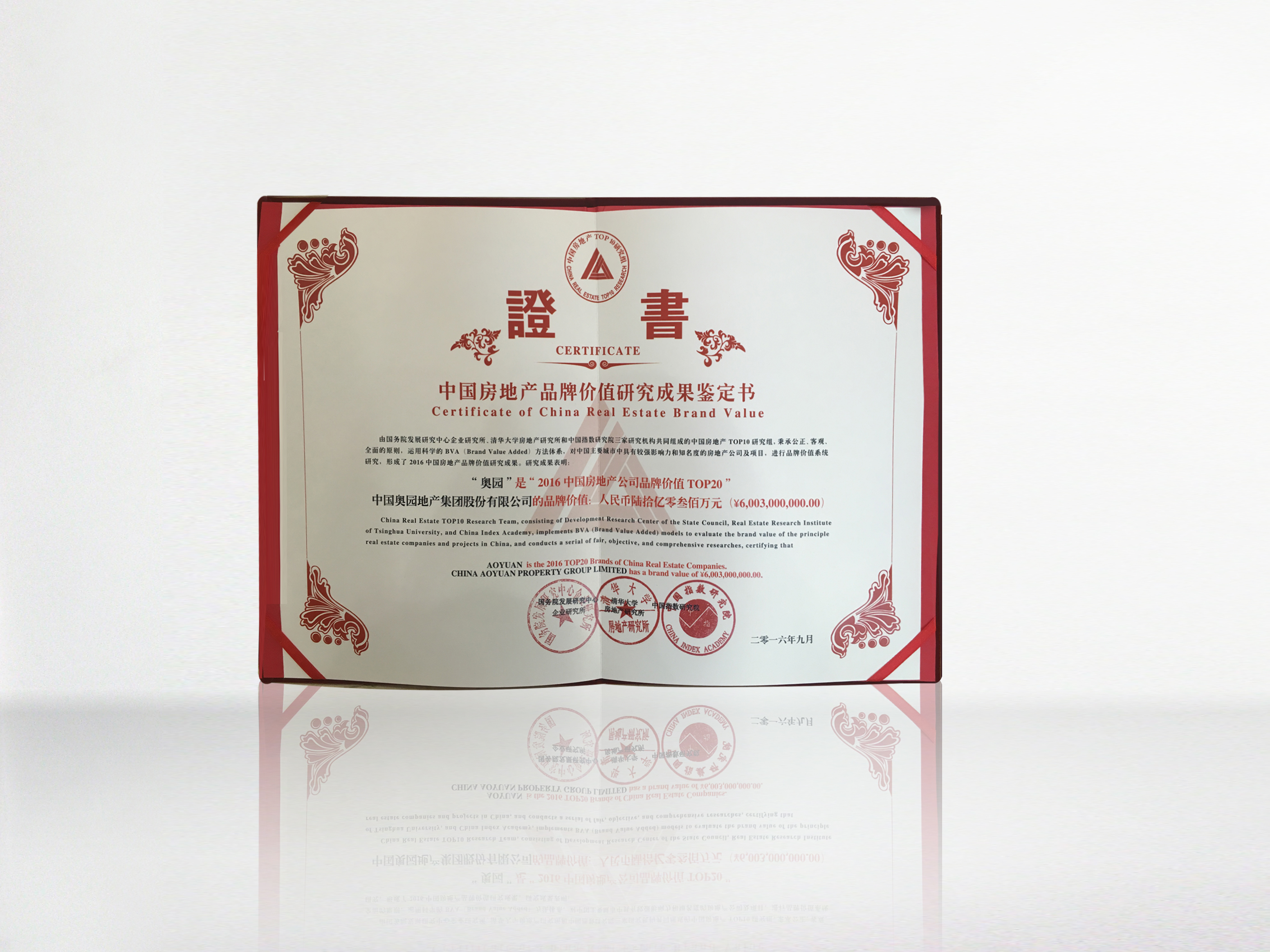 奧園榮膺“2016中國(guó)房地產(chǎn)公司品牌價(jià)值TOP20”第18名