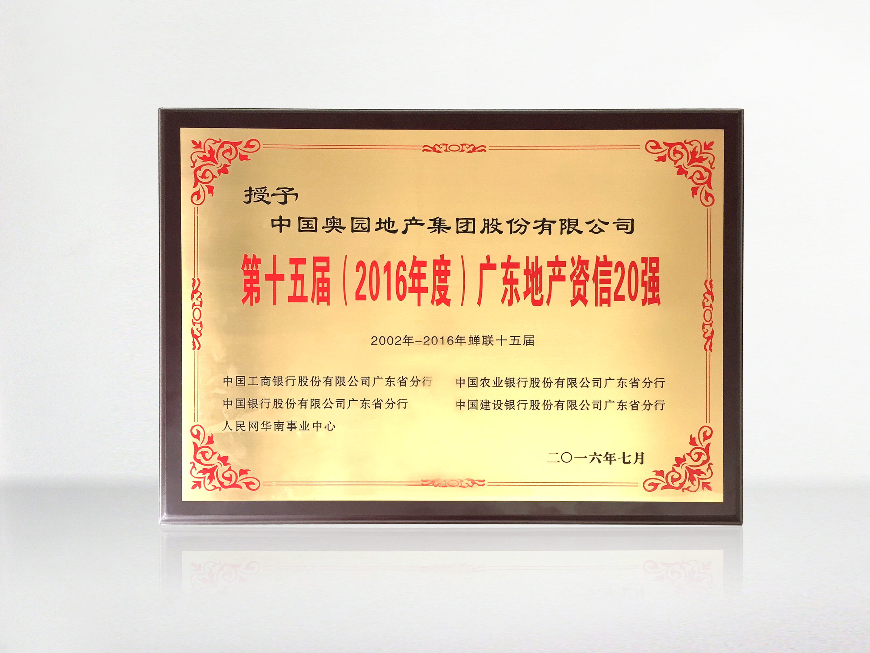 奧園集團連續(xù)十五年蟬聯(lián)“廣東地產(chǎn)資信20強”