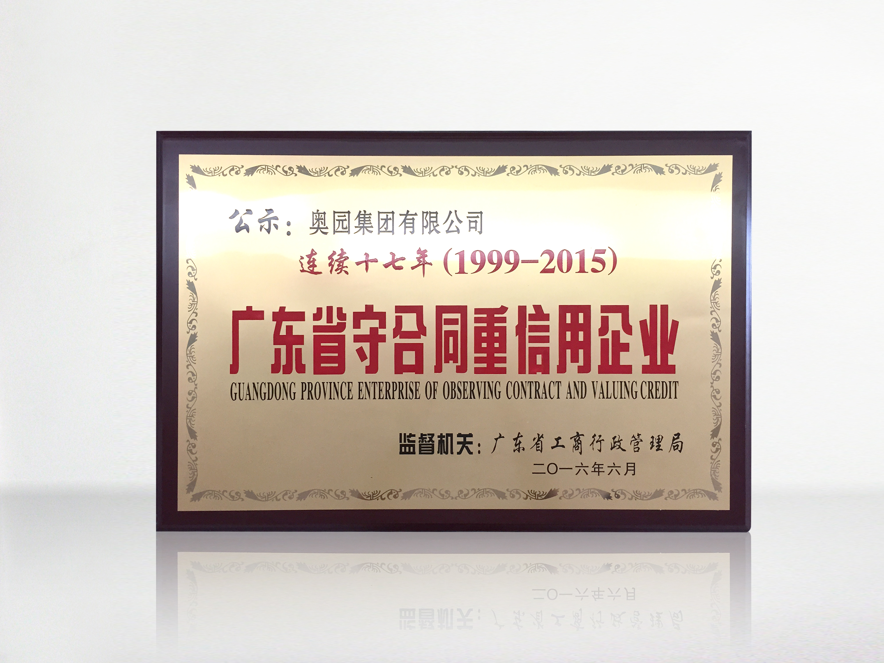 奧園連續(xù)十七年榮膺“廣東省守合同重信用企業(yè)”稱號