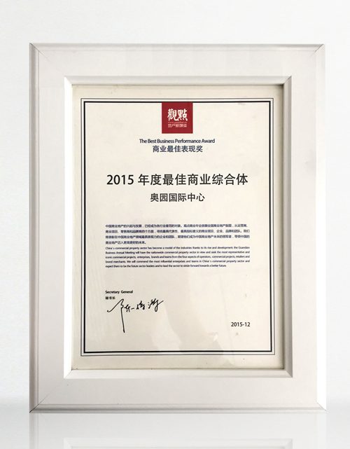 奧園國際中心榮獲“2015年度最佳商業(yè)綜合體”榮譽
