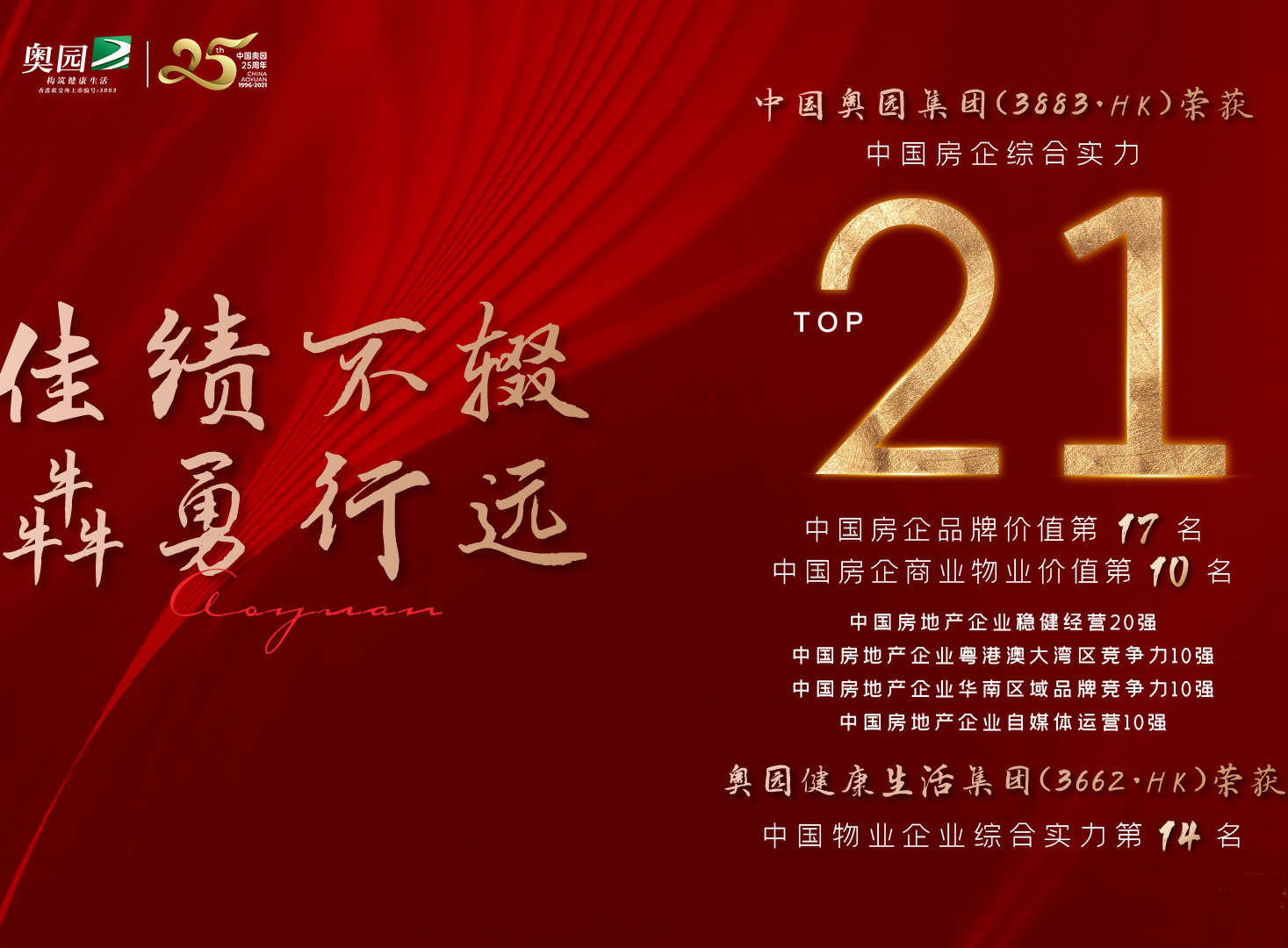 一日攬獲多項(xiàng)大獎(jiǎng)!中國(guó)奧園躍登房企綜合實(shí)力第21名