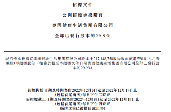 招標(biāo)文件—公開(kāi)招標(biāo)承投購(gòu)買(mǎi) 奧園健康生活集團(tuán)有限公司 全部已發(fā)行股本的29.9%