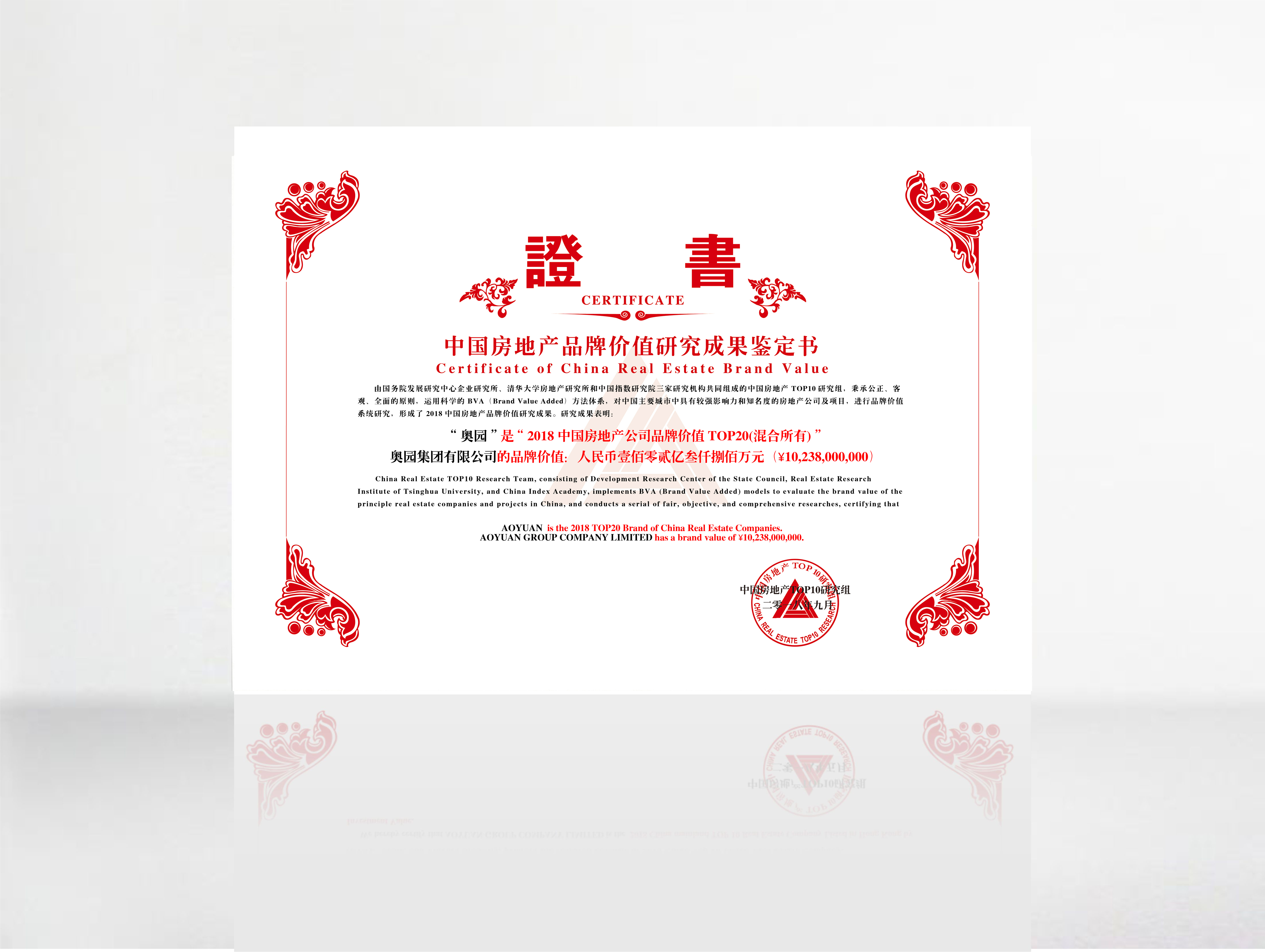 奧園榮獲2018中國房地產(chǎn)公司品牌價值第15名