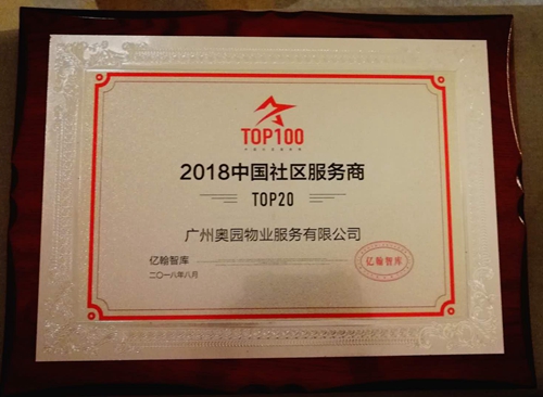 奧園榮獲“2018年中國社區(qū)服務(wù)商TOP20”等獎項(xiàng)