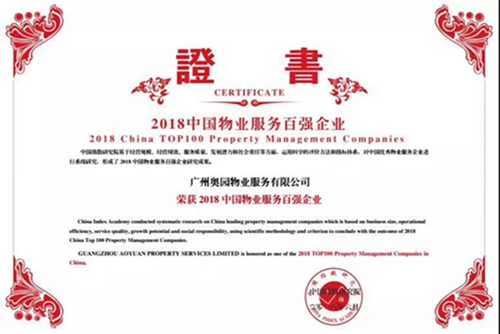 奧園榮登“2018年中國物業(yè)服務(wù)百強企業(yè)”第16位