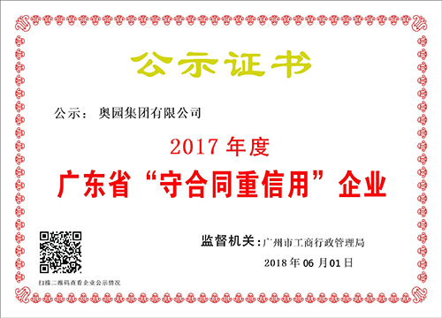 奧園集團(tuán)連續(xù)十九年榮膺“廣東省守合同重信用企業(yè)”稱號